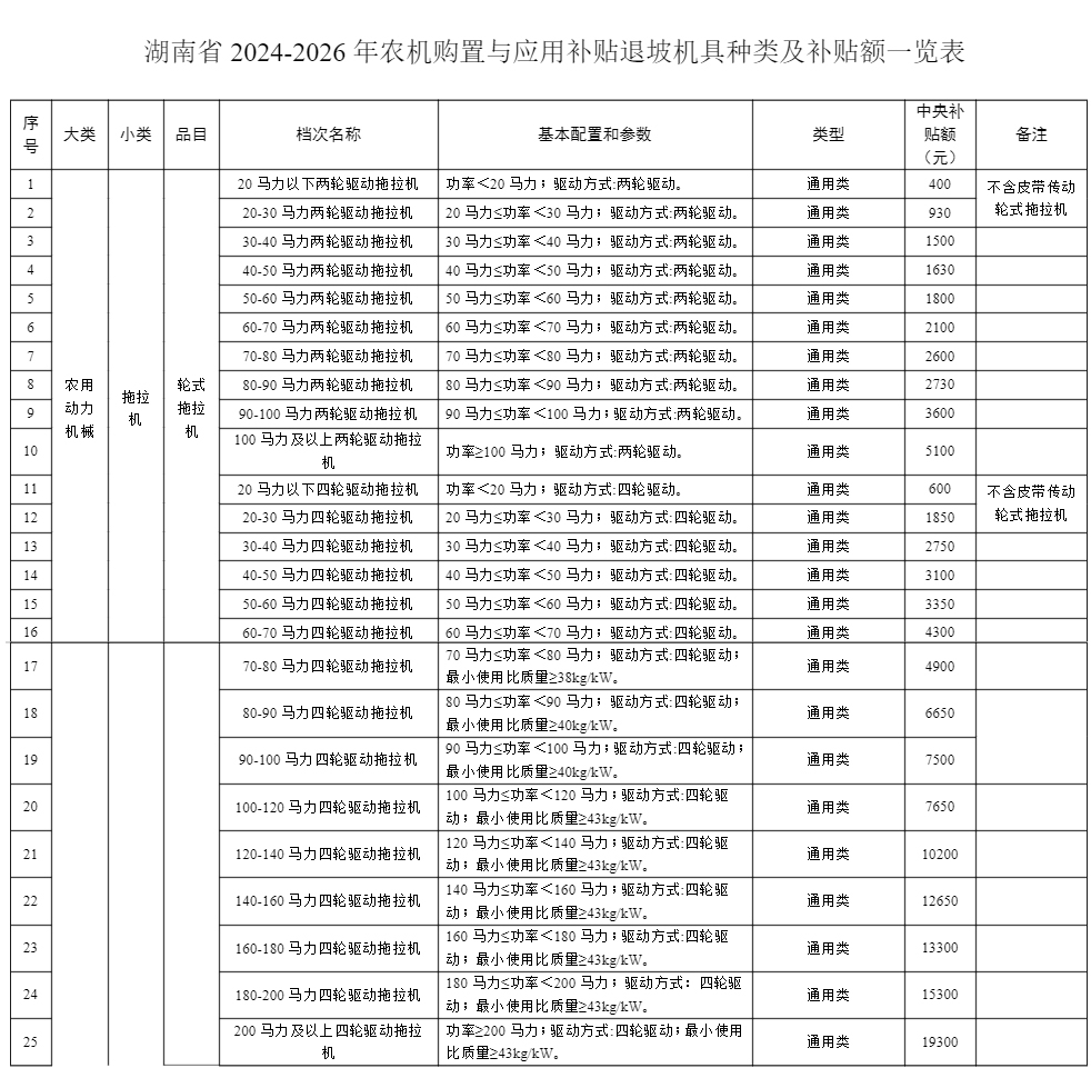湖南?。?026年底,手扶式/兩輪驅動輪式拖拉機等退出農(nóng)機補貼范圍
